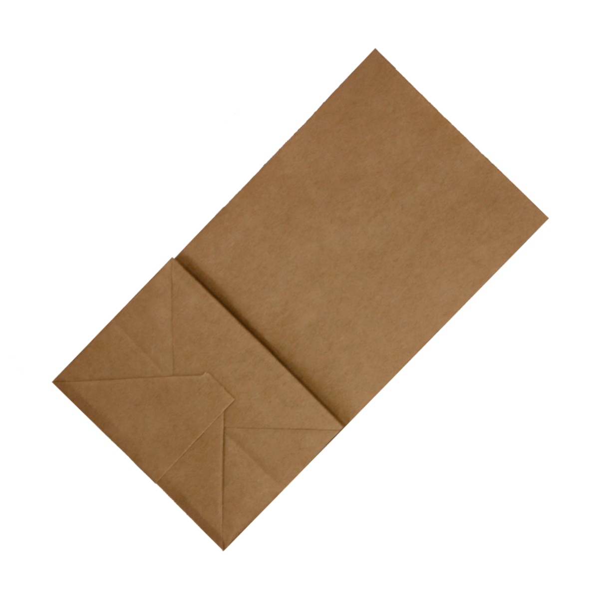 Размер 90×65×170 мм. Крафт-бумага коричневая, плотность 70 г/м² без печати. Плоское прямоугольное дно. Объём 0,5 кг.