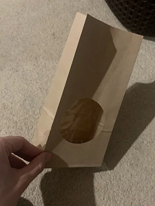 Сдержанный дизайн, просто крафт, окошко. Копия как на фото. Склеен вроде крепко.