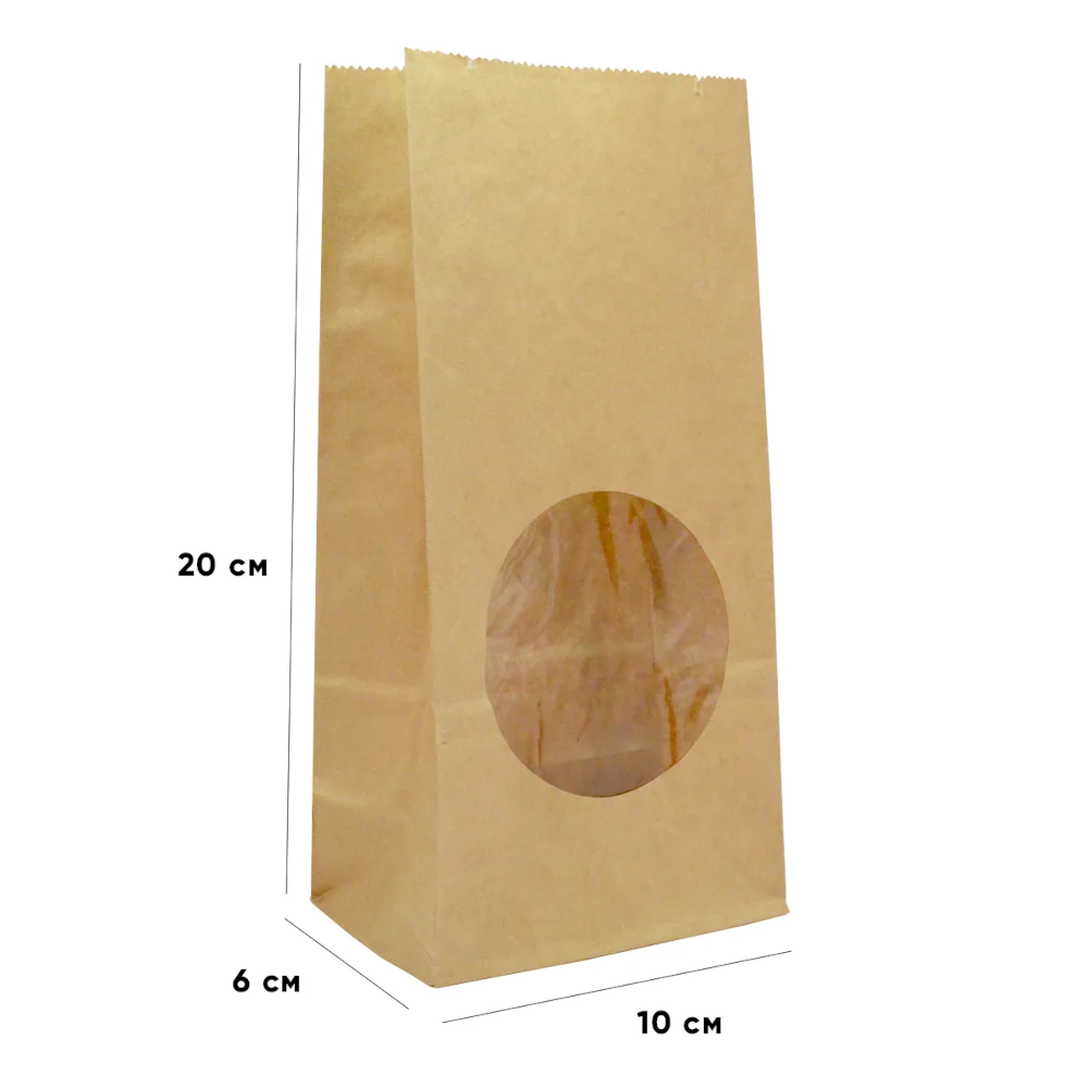 Размер 100×60×200 мм. Ламинированная крафт-бумага. Окно 70×52 мм. От дна до окна 35 мм. Не паяется.