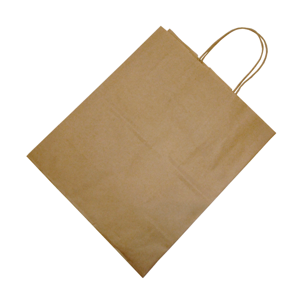 Размер 220×120×250 мм. Бурая крафт-бумага плотностью 70 г/м² с ручками из бумажной веревки.