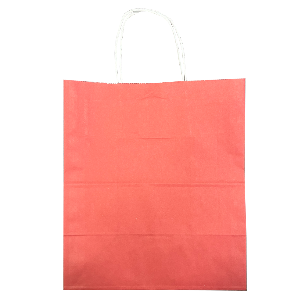 Крафт-пакет красный с кручёными ручками 24×14×28 см