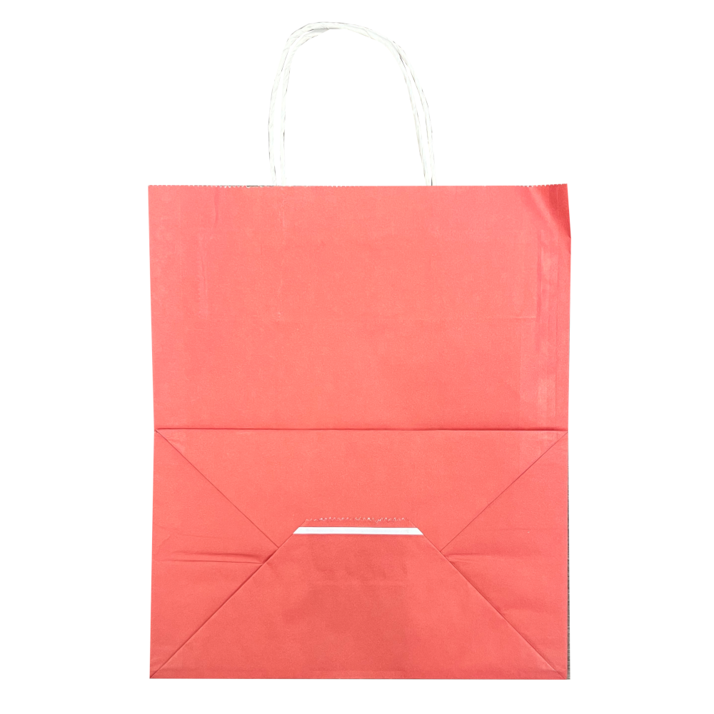 Бумажные пакеты из отбеленной крафт бумаги. Внутри белые, внешняя сторона окрашена в красный цвет.