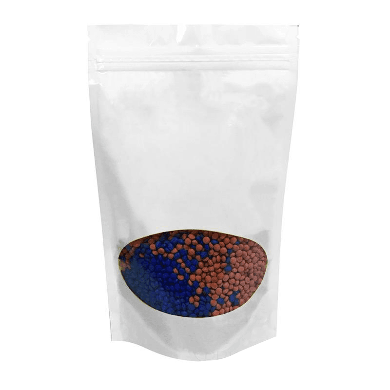 Размер 105×190+(35+35) мм. Высота до замка 150 мм. Объём 250-300 мл. Пленка (ПЭТ/ПЭ) плотность 93 мкм. Цвет белый глянцевый. Овальное прозрачное окошко 4×8 см. Замок zip-lock.