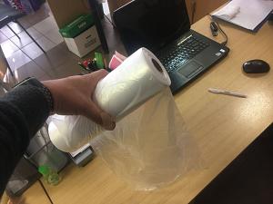 Размер 25×45 см. В рулоне 500 шт. Толщина 8 мкм. Цвет прозрачный. На картонной втулке ø 2,5 см.