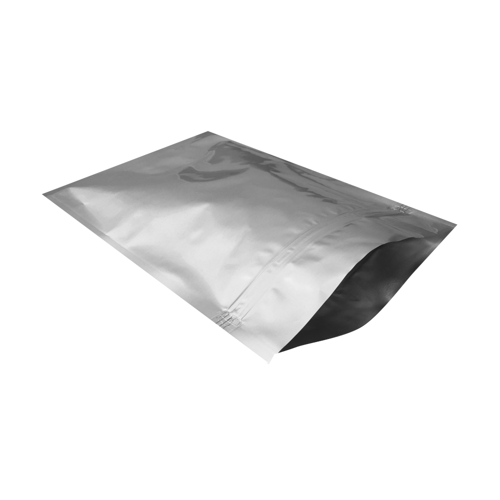 Размер 150×200 мм. Пленка фольгированная (ПЭТ/ПЭТ мет./ПЭ) плотность 93 мкм. Трёхшовные. Цвет серебристый.