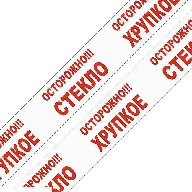 Ширина рулона 48 мм. В рулоне 60 м. Толщина пленки 45 мкм. Цвет белый, красная надпись "Осторожно хрупкое! Осторожно стекло!.