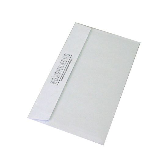 Размер E65 110×220 мм. Бумага белого цвета плотностю 80 г/м². Адресная сетка-подсказ «Кому-куда». Синяя внутренняя запечатка, препятсвующая просвечиванию. Клапан прямоугольный по широкой стороне. Стрип-лента с клеем.