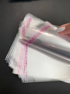 Размер без учёта клапана 11×16 см, клеевой клапан 3 см. BOPP толщиной 20 мкм.
