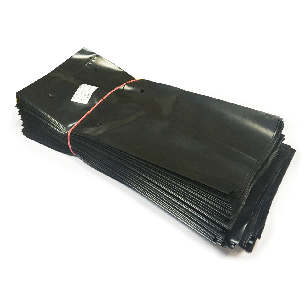 Объём земли 3 л (14,5×12×26 см). Материал — чёрная плёнка ПВД, плотность 100 мкм. 100 шт. в пачке.