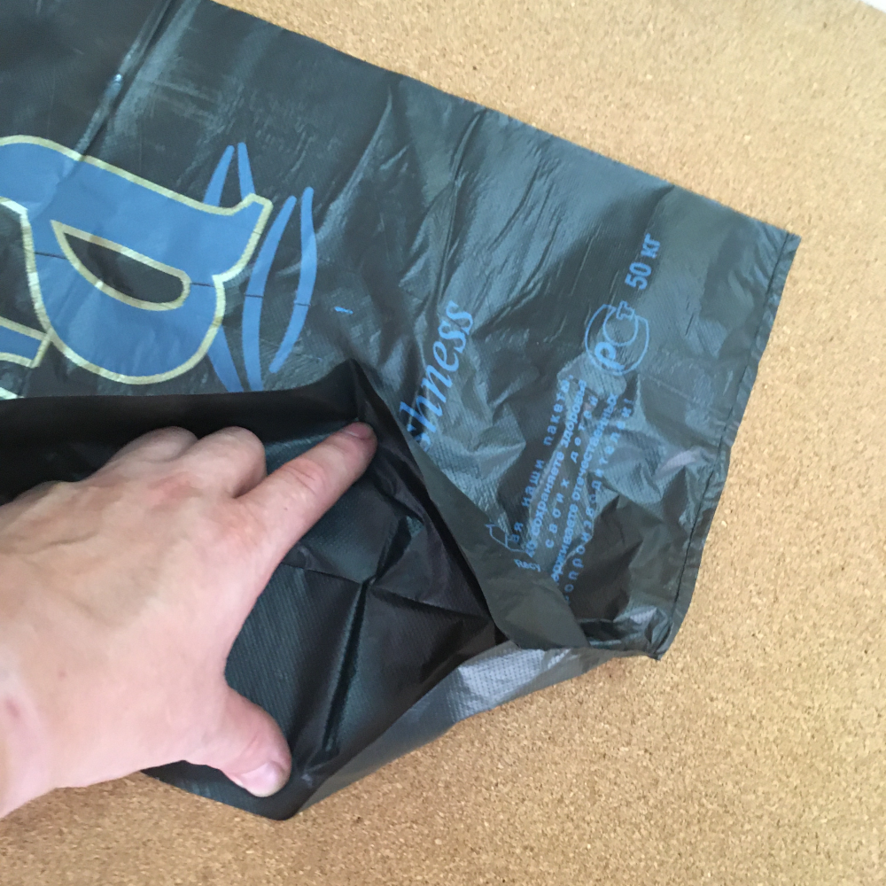 Размер 30×57 см. Боковое расширение 16 см. Материал ПНД, толщина 25 мкм. Цвет чёрный со всем известным рисунком «Фа».