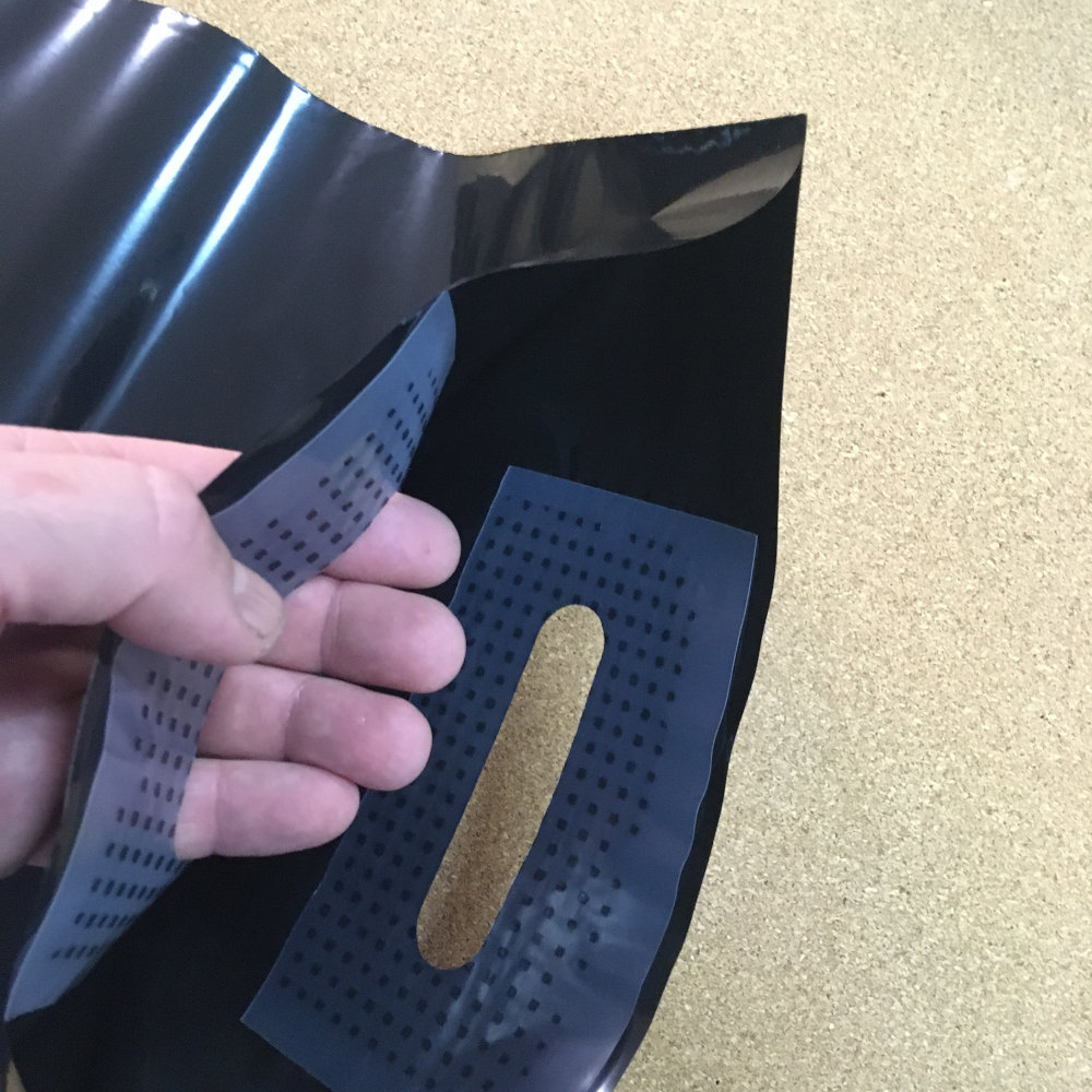 Размер 300×400(+30) мм. Плотность 70 мкм. Цвет пленки черный. Усиленная вырубная ручка. Закладное дно.