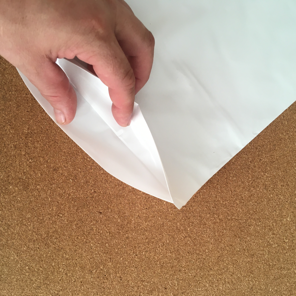 Размер 450×500(+30) мм. Плотность 70 мкм. Цвет пленки белый. Усиленная вырубная ручка. Закладное дно.
