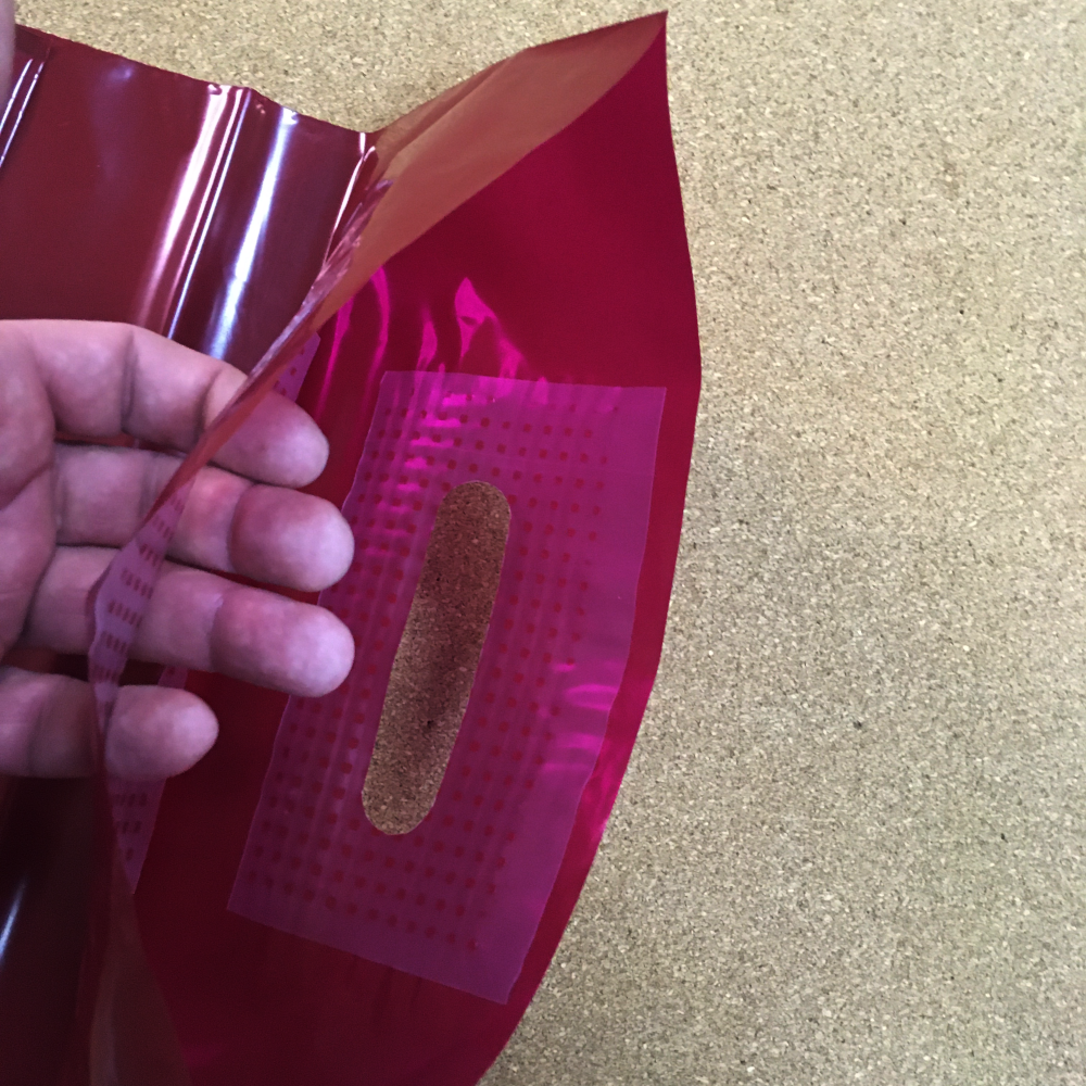 Размер 300×400(+30) мм. Плотность 70 мкм. Цвет пленки бордовый. Усиленная вырубная ручка. Закладное дно.