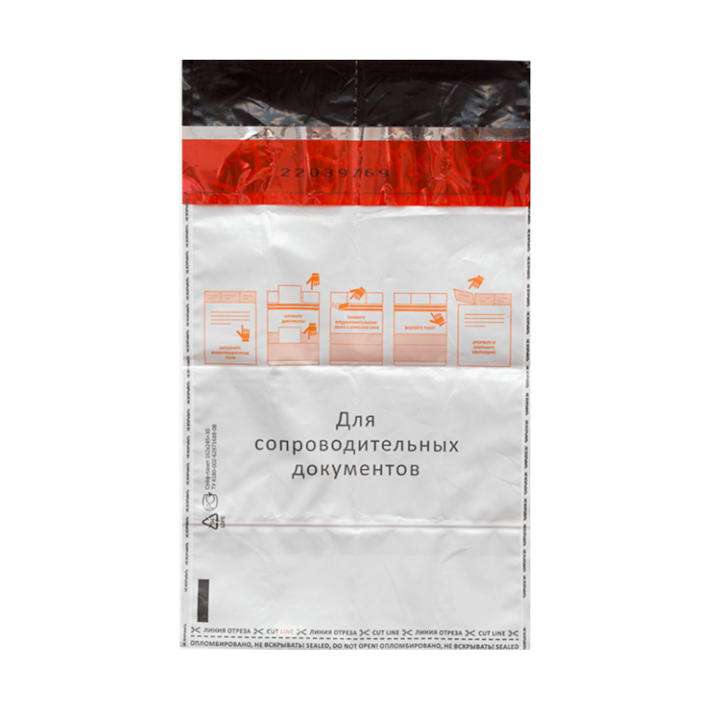 Размер 562×695+45 мм. Материал многослойная полимерная пленка 80 мкм. Три отрывные квитанции.