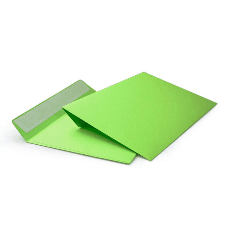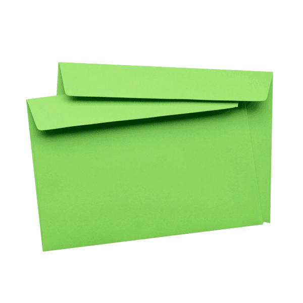 Размер С6 114×162 мм. Офсетная бумага плотностью 110 г/м². Окрашен в светло-зелёный цвет снаружи и изнутри. Прямой клапан с клеем под защитной полоской — стрип.